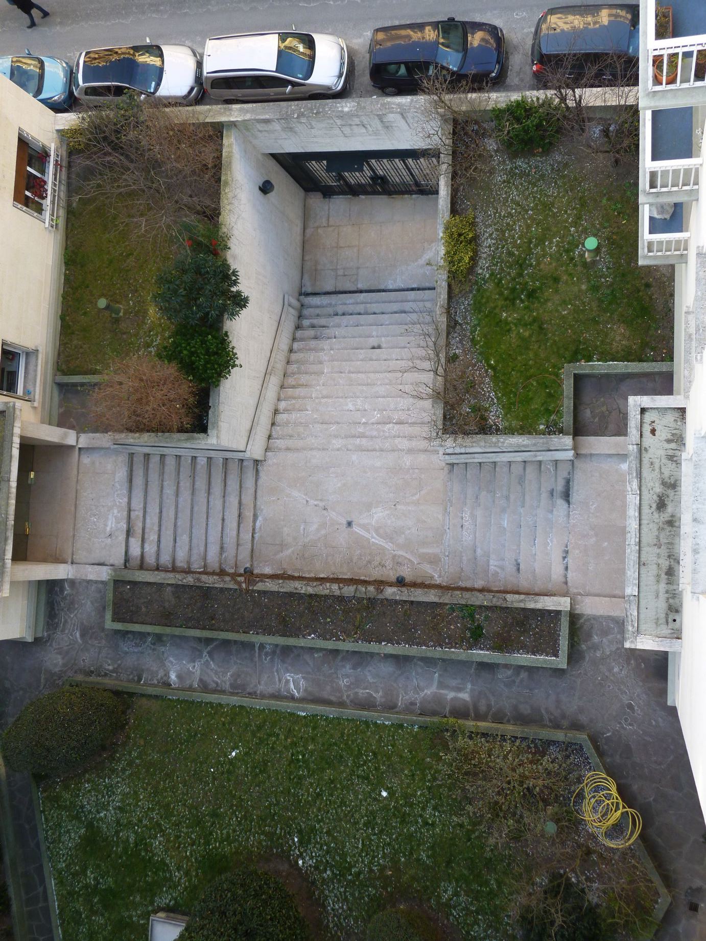 Rue Montrosier à Neuilly sur Seine. Restauration complète d’un escalier d’honneur en pierre et son éclairage intégré.